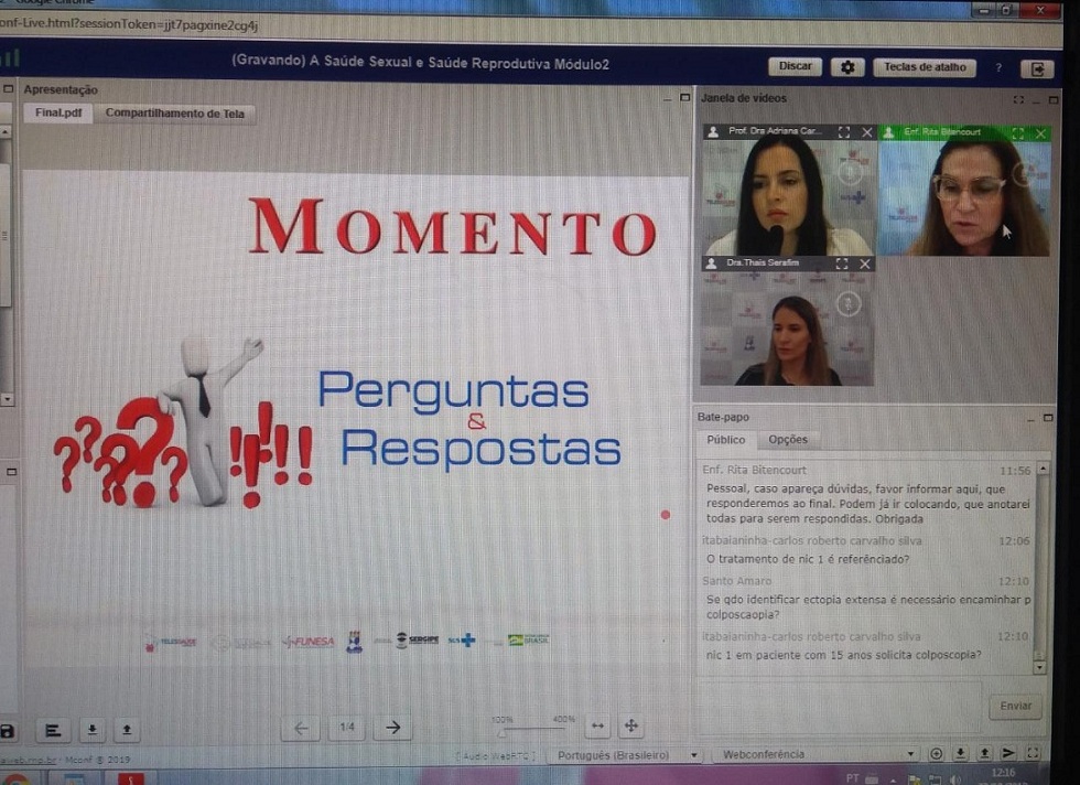 Dando continuidade ao Ciclo de Webpalestras sobre a Saúde da Mulher, o Núcleo Telessaúde Sergipe, administrado pela Fundação Estadual de Saúde (Funesa), com suporte da Secretaria de Estado da Saúde (SES), realizou, nesta quarta-feira, 23, o segundo módulo das videoaulas, com os temas “Prevenção do Câncer de Colo de Útero” e “Prevenção do Câncer de Mama”, ministrados pela professora e médica ginecologista e obstetra do HU (Hospital Universitário), Adriana Cardoso, e a médica e professora de ginecologia e obstetrícia do HU, Thais Serafim, respectivamente.