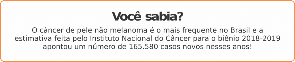 INSTITUTO NACIONAL DO CÂNCER – INCA. MINISTÉRIO DA SAÚDE, 2018. Disponível em: https://www.inca.gov.br/tipos-de-cancer/cancer-de-pele-nao-melanoma