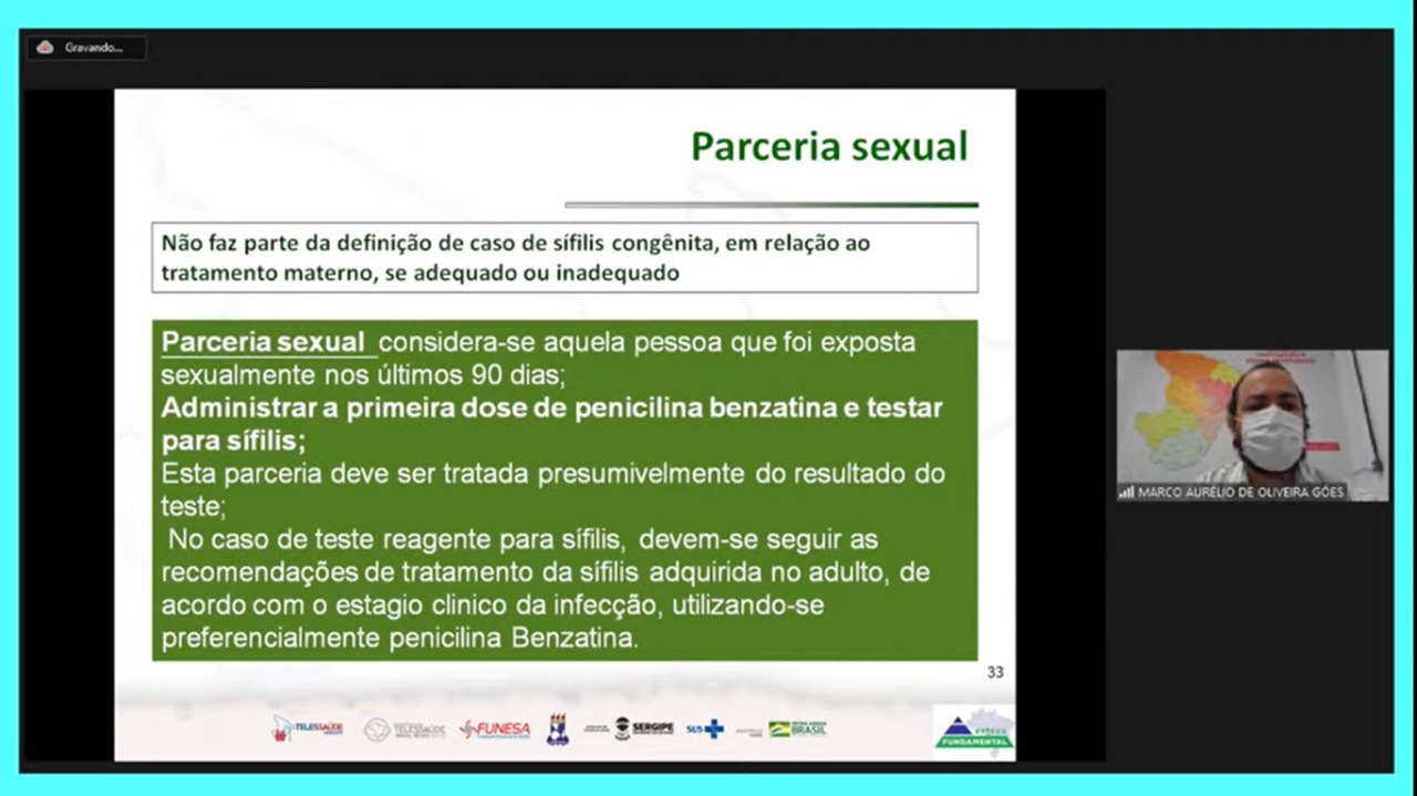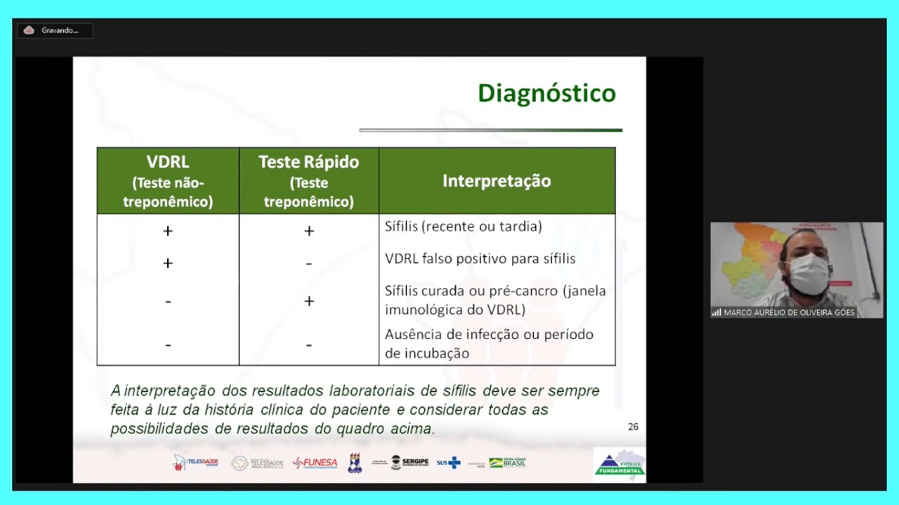 Trabalhar o enfrentamento da sífilis gestacional e congênita, desde o contágio no período gestacional, assim como a sua transmissão de forma congênita, é fundamental. Com essa premissa e a situação de centenas de casos registrados em Sergipe, a Secretaria de Estado da Saúde (SES), em parceria com a Fundação Estadual de Saúde (Funesa), realizou, nesta quarta-feira, 24, uma tele-educação sobre o tema, voltada a profissionais da Atenção Primária à Saúde (APS). A ação contou com webpalestras ministradas pelo docente do curso de Medicina da UFS, médico infectologista e diretor de Vigilância em Saúde da SES, Marco Aurélio Góes, além da pedagoga, especialista em psicopedagogia e referência técnica da SES, Zênia Maria S. Silva. Participaram da tele-educação 24 municípios de três estados brasileiros.